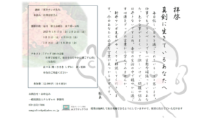 ご案内パンフレット(PDFファイル) 拝啓 真剣に生きているあなたへ 毎日忙しい日々を過ごされていることと思います。仕事でもプライベートでも一生懸命頑張っているあなた。色々な事がうまくいって欲しいけど、問題 … 続きを読む 完全オンライン講座 ムユウジュクラス