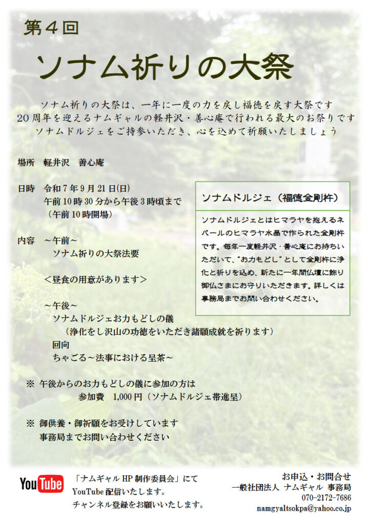 20周年を迎えるナムギャルの軽井沢・善心庵で行われる最大のお祭りです