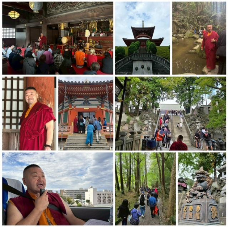 第47回サンポの散歩は、ナムギャル20周年ということで、新井サンポ先生が幼少期から親しまれていた千葉県の成田山新勝寺にお参りに行きました。川崎から「ナムギャル巡礼バス」で出発し、車内では新井サンポ先生から「チャムジャム(チベット語でお散歩という意味)説法会」ということでご法話をいただきました。景品をかけたクイズ大会もあり、賑やかなバスの旅でした。